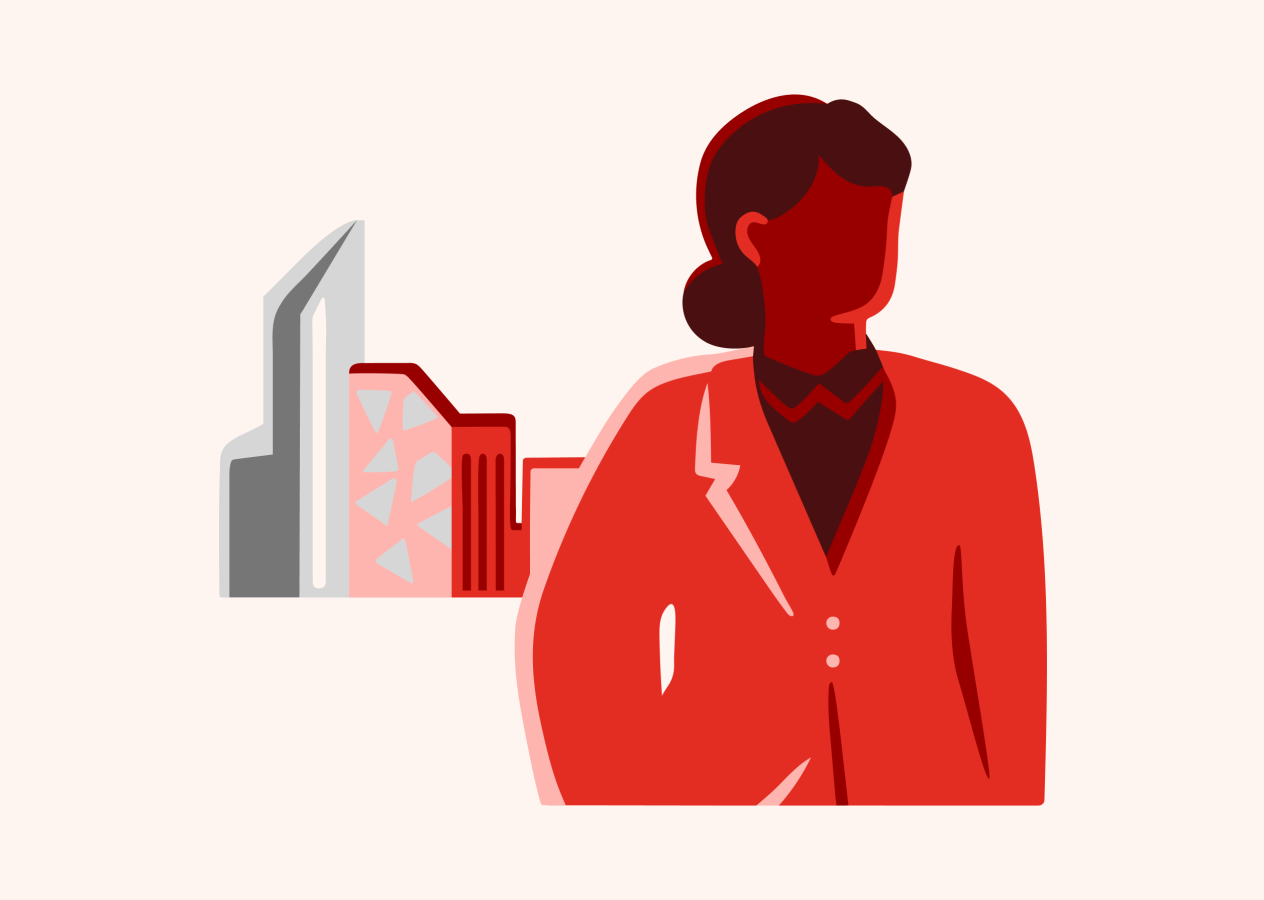 Illustrasjon av en jurist med flyvende dokumenter ut